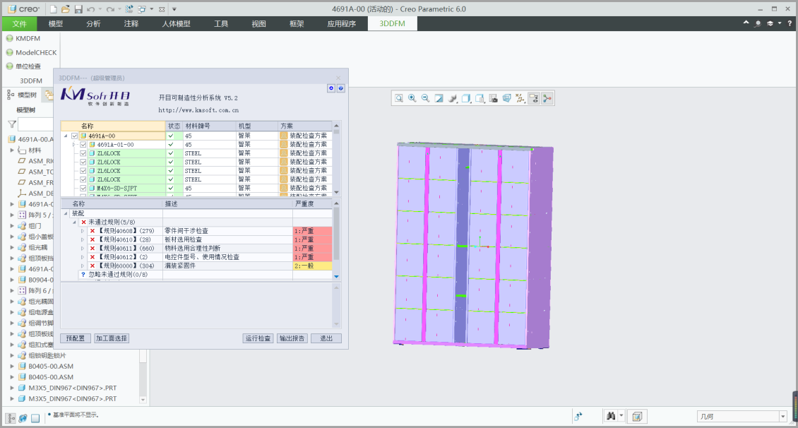 2、与三维CAD无缝集成,实现了企业基于三维产品模型进行工艺性审查,并利用三维CAD系统对设计模型进行审查结果的显示。并对菜单按钮进行优化设计,帮助工艺人员实现模型检查和单位检查的快速操作。